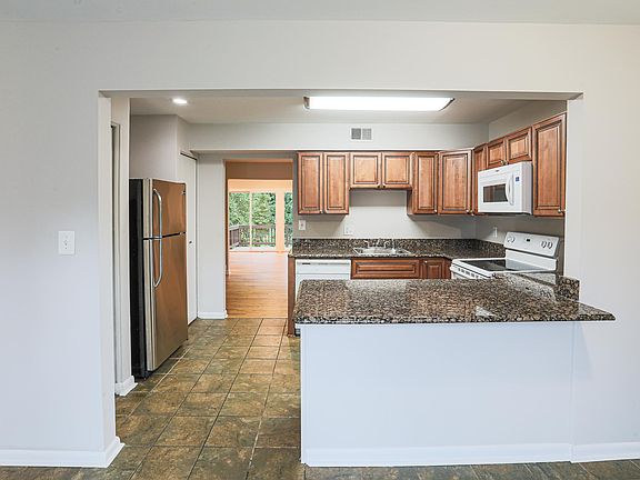 Move right in to this remodeled townhome! Open floor plan with hardwood floors throughout much of the main level, along with a wood burning fireplace in the living room. The kitchen has granite countertops and updated appliances. Upper level has 3 bedrooms and 2 full bathrooms, including one en-suite. The carpet has been replaced in the home and new paint throughout. Lower level has a large open area and another room for all your entertaining needs, including a walk out to the backyard. Renters responsible fall all utilities, tv/internet. Water and lawn is covered by the HOA.