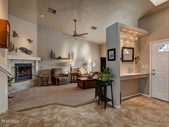 Beautiful Cliff Rose home! Vaulted ceilings & tile flooring throughout give an open & airy vibe sure to please! Living room w/ fireplace perfect for those cozy Prescott nights! Eat in kitchen w/ formal dining to enjoy your favorite meals! Breakfast bar seating & outdoor access perfect for entertaining! Large owner's suite w/ a separate tub to relax in & soak all your cares away! Additional bedrooms are great for guests or an in-home office! Two car garage & shed in backyard to store all your necessities! Cliff Rose even offers gated RV parking! Landscaped backyard for easy maintenance! Sit on your covered back porch & enjoy the endless Arizona skies! Conveniently located less then 10 minutes from restaurants, shopping & the heart of Prescott! Come see this beautiful home before it's gone!