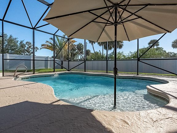 NEW ROOF COMING SOON!! Meticulously cared for pool home with countless detailed features! This stunning residence offers easy access to I-95, with Cat 5 wiring in every room along with split floor plan will make for an ideal home office. Extra details have been upgraded such as lighting, outlets, switches has raised the bar for modern living. The spacious kitchen featuring custom pull-out shelving, SS appliances, an eat-in area with a breakfast bar, and convenient USB outlet. The primary bedroom boasts custom shelving in the master closet, the updated bathroom includes smart vanity mirrors, additional outlets, dual sinks, granite countertops. Relax in the screened-in pool or plenty of room to entertain on surrounding custom pavers on the patio and dedicated barbecue area. The fenced yard provides privacy and a safe space for children and pets to play. Freshly painted interiors and exteriors add to the home's appeal along with the additional pavers widen the driveway plus so much more!
