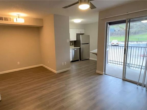 Private balconyGray vinyl plank flooringStainless steel appliancesLengthy dog runRecent tile back splashLarge parking
