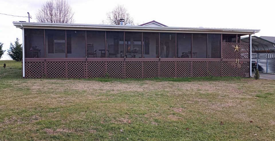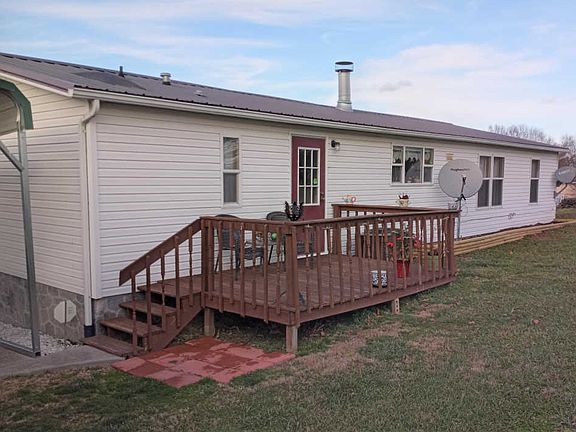 Country living in a beautiful setting, mountain views and wide open spaces. This double wide 3 bed 2 bath home has a permanent foundation and is in excellent condition. This home offers a full length enclosed screen porch on the front. A stacked stone fireplace in the living room and a spacious kitchen. The master bathroom has a walk in spa tub and a separate shower. There's a rear deck and a steel freestanding carport.