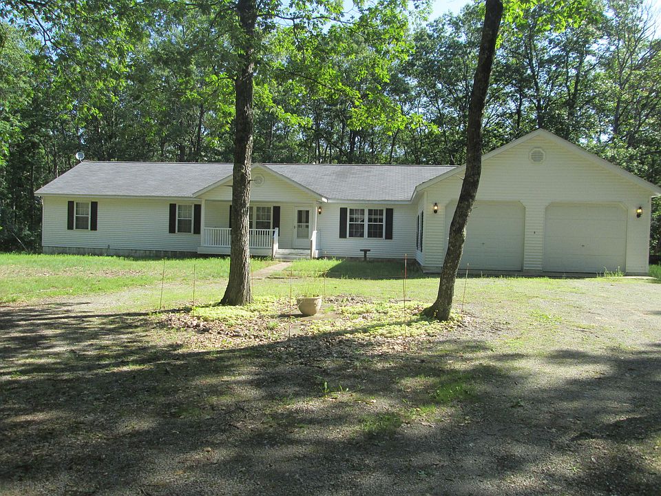 Looking for peace and quiet. This home may be perfect for you. 20 year old home on a 10 acre wooded parcel on a private road. Home has 2353 square feet on the main level plus another 1161 square feet in the partial basement. 3 bedrooms 2 baths with a large master suite with walk-in closet. There's a large breezeway that has a 2nd range and refrigerator and a large storage closet. Open floor plan with all appliances included. There is an extra family room that is the perfect space for an office.New natural gas Trane furnace in 2018. Covered porch on the front of home and 2 decks on the back. Driveway is getting new limestone and that will also be on the walkways to the back of home. 25x52 attached 3 car garage has doors on both ends for drive through access. Close to state land & trails.