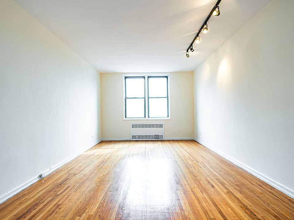 Bright, spacious and well maintained one bedroom one bath located in a lovely co-op. The 4th floor unit with Eastern exposures is well lit, and features hardwood floors and ample storage. The bedroom fits a king size bed and additional furniture. The apartment is vacant and Move in ready! Schedule a visit today!