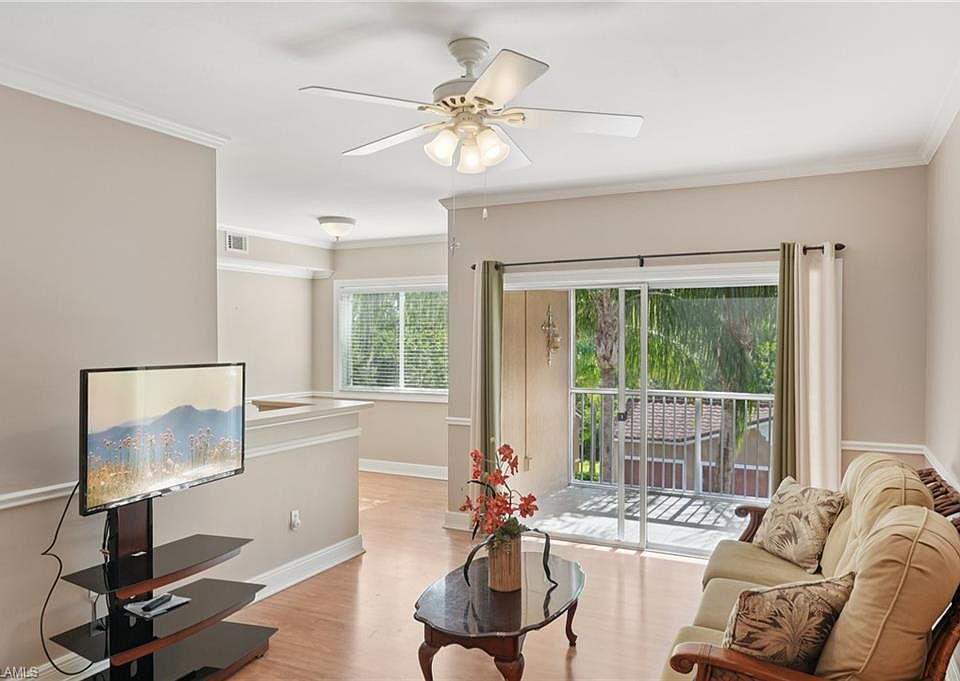 Step into style, comfort, and convenience in this light-filled 1-bedroom, 1-bath condo perfect for anyone seeking low-maintenance luxury. Discover neutral flooring throughout, crown molding, and ample storage in the walk-in closet featuring a custom organizer. Just minutes from downtown Naples, world-class beaches, shopping, dining, golf, boating, and entertainment. The Napoli condominium community boasts an array of luxurious amenities, including a resort-style pool with lake views, bocce courts, lighted tennis courts, indoor racquetball, and pickleball. The clubhouse features billiards, lounge area, fitness center, locker rooms, and meeting spaces. Scenic walking paths and BBQ grills are perfect for outdoor gatherings. A full-time property manager ensures the property is well-maintained and secure.