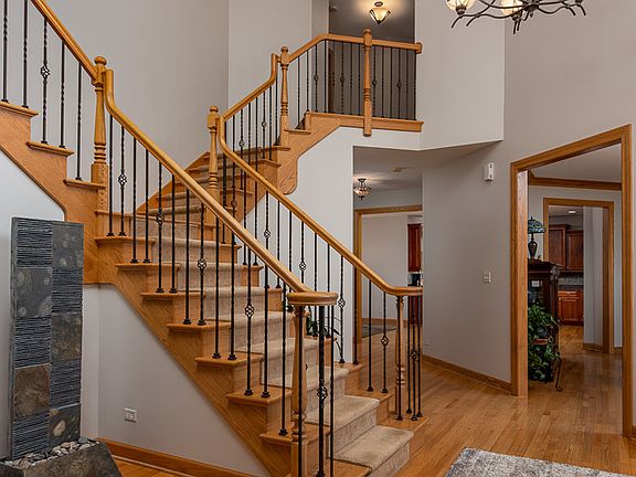 Beautiful two story home situated upon hillside on huge 100X400 deep lot with 2 story deck that overlooks beautiful open area and breathtaking views. Two story foyer with chandelier and split staircase. Classic & timeless perfection are blooming in this well cared for home. Hardwood floors throughout main level, huge kitchen w/ walk-in pantry, laundry/mudroom with storage closet off garage, first floor den/office or bedroom with sliding glass doors to deck. Full bath on main level with possible in-law suite. Sunken family room with stone fireplace and cherry tiger wood floors. Generous size bedrooms, luxury master suite features hardwood floors, his & hers walk-in closet, fireplace, private balcony and endless views of the backyard. Walk-out basement is perfect for entertaining in the additional family room/media area, game room and bar area w/ beautiful sealed slate floors, tons of closet space, 4 garage spaces, newer asphalt driveway, newer furnace, ac, roof, front door and a whole lot more to see and love. 4197 SQ. FT. of Living + additional 1500 SQ. FT. in finished basement. Quiet neighborhood, on no outlet street, Northwest section of DG, within steps of Lee & Grant Park.