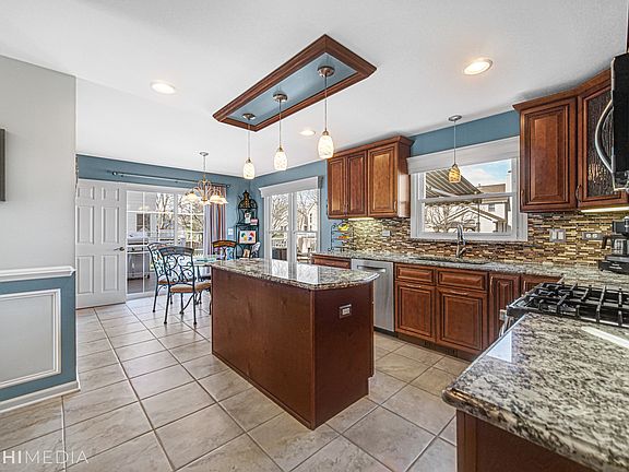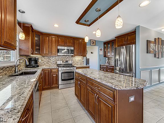 Another fantastic home in Willoughby Farms! Updated and remodeled through out. Beautiful timeless, classic 42" birch kitchen cabinets w/crown molding & pull outs sets off the granite counters & stainless steel appliances. Slider to maintenance free deck & sun setter + Webber natural gas grill stays. Custom FP in the cozy FR. Large primary bedroom w/trey ceiling, walk in closet & custom, remodeled bath that offers granite counters at the double sink vanity & ceramic shower + whirlpool tub. Full basement is finished w/rec room with pool table, bar w/stools and a full bath. Crown molding, wainscotting, ceiling fans, surround sound & speakers, electronic air cleaner, battery back up on sump pump, irrigation system & more. Great lot in a great neighborhood. Walk to K - 8 school and minutes to shopping!