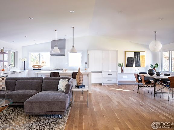 This completely remodeled North Boulder home features mid-century modern influences, a large open living area, & an excellent layout. Stunning finishes and abundant light combine w/ a vaulted ceiling & fantastic yard to create an excellent 5 bedroom, 5 bathroom North Boulder home. Beautiful kitchen w/ Thermador appliances, large island and great work space. Owner's suite w/ stylish bathroom. Bonus loft suite w/ excellent bathroom. 2 car attached garage, landscaped yard, & amazing location.