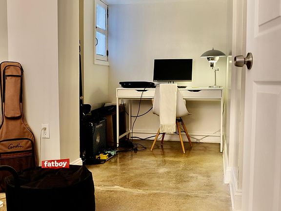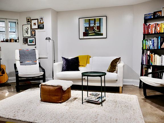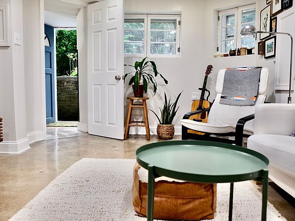 Stylish, bright, 1BR + office english basement + patio combines historical details and industrial chic style -- an original clawfoot cast iron tub, newly polished concrete floors, new kitchen with stainless steel appliances, a dining space for dinner parties, a walk-in closet in the bedroom, three zone AC/heating, and electric keypad locks. But the best part is the patio! Enjoy cookouts and growing fresh herbs right outside your door. The apartment is climate friendly, too, powered by rooftop solar panels, and with ultra efficient systems like a tankless hot water heater. Available 7/1. Cats ok. No smokers, please. $2100/month rent includes all utilities (electric, water) AND super fast wifi. In-unit laundry in the shared storage/utility room.