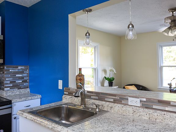 - Kitchen Cabinets/Counters: Formica Counter, White Cabinets