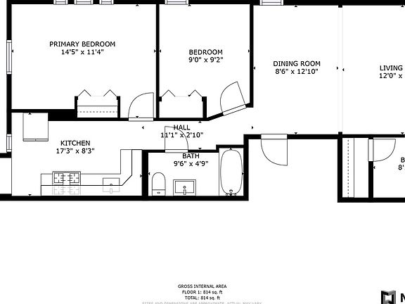 - Total interior livable area: 825 sqft