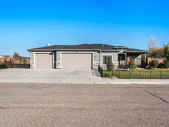 This beautiful 4-bed/3-bath single-story home, built in 2018, sits in a quiet neighborhood on a secluded 0.25-acre corner lot. The property features gated RV parking, a 3-car garage, and a fully fenced backyard with a six-foot block wall for added privacy. The outdoor space is a gardener's delight with 12 mature fruit trees, including plum, apple, pear, cherry, apricot, and Asian pear varieties, as well as a plethora of rose bushes. A gas hookup on the patio makes it perfect for entertaining, and there's even a separate shed for ATV storage or use as a ''she shed.'' You'll love the vaulted ceilings, extra-tall kitchen cabinets, a hidden walk-in pantry, and an open floor plan ideal for hosting. All appliances are included, and the owners are also willing to sell the furniture. Located minutes from the trails at Three Peaks Recreation Area and with easy access to the highway, this well-maintained home offers comfort, space, and convenience!
