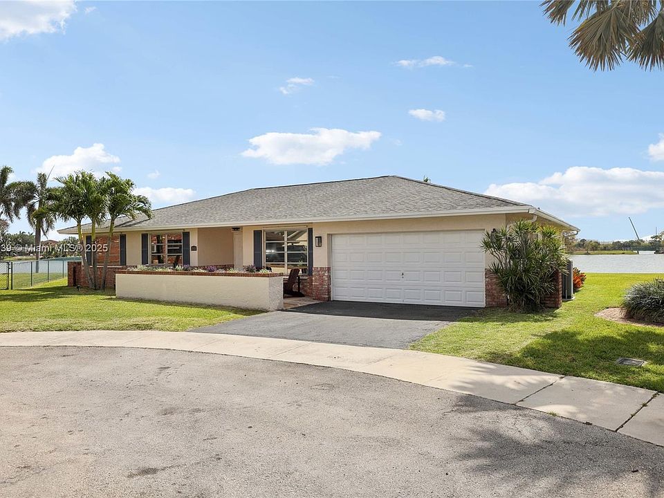 Experience serene lakeside living in this spacious 2,000+ sq. ft. home. Boasting an unimpeded lakeview with the scenic Royal Palm Park as your backdrop. This residence is situated in a cul-de-sac and enjoys plenty of natural light. This home has new vinyl wood grain laminate floors, 2-3 yr AC, updated electrical panel, a 2 car garage and a brick patio to enjoy the sunrise. 2 of the bedrooms have been made into one large room, but can easily be converted back to a 3 bedroom. Pre-listing 4 Point inspection is clean. This home is located near shops, restaurants, InterMiami Soccer Stadium, highways, the beach, Fort Laud., Pompano, Wilton Manors, 4 parks and more! Property recently appraised. ASSUMABLE VA LOAN AT 2.75% INTEREST RATE. Must qualify for a VA (Veterans Affairs) loan to assume it.