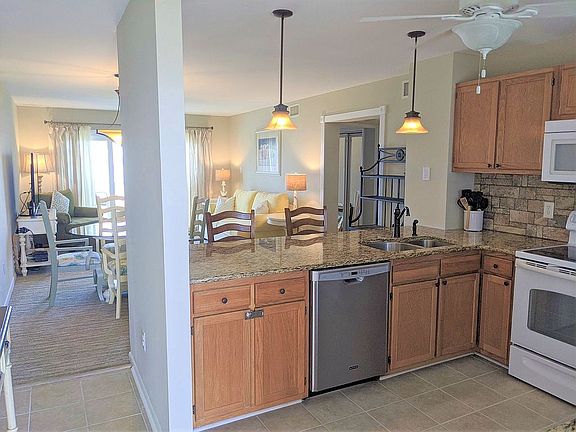 2.5% COMMISSION WILL BE PAID BY SELLERS TO BUYERS AGENTS! The oceanfront breezes await you in this two bedroom/two bathroom condo! From the minute you walk in the front door, you will be taken away by the picturesque views of the Atlantic Ocean. Step into the updated, fully stocked kitchen featuring tile floors, granite countertops and convenient breakfast bar pass-through perfect for entertaining and quick snacks. Continue into the main living area that provides a dining table for four and comfortable seating with a large-screen TV for your entertainment after a day at the beach, as well as access to the balcony. Sit on the balcony and enjoy the sounds and sights of the ocean in front of you! Filled with natural light, the master bedroom features ocean views and access to the balcony, as well as an en suite bathroom with updated shower stall, and tile floors and walls. The second bedroom provides generous sleeping with bunk beds and a twin bed. The hallway bathroom has tile flooring and walls, granite counters, new toilet and plenty of storage. Full-size front load washer and dryer are tucked away in the hallway to make those wet swimsuits and towels an ease to clean. The unit has new, upgraded carpet in the living and bedroom areas, fresh paint throughout, and all of the ceilings have been smoothed out (i.e. no popcorn ceilings here!). Rest at ease as all windows and sliders are hurricane-grade (sound and oceanfront); have no worries with new mechanicals including HVAC and tankless hot water heater. All HOA assessments to date have already been paid in full by seller. This unit has been lovingly used as a second home for out-of-state owners and does not show the wear and tear of a rental unit. This is a great location for a vacation home or even year-round living on the island. This is truly turn key, all furniture and decor conveys! Don’t miss out on this move-in ready home!