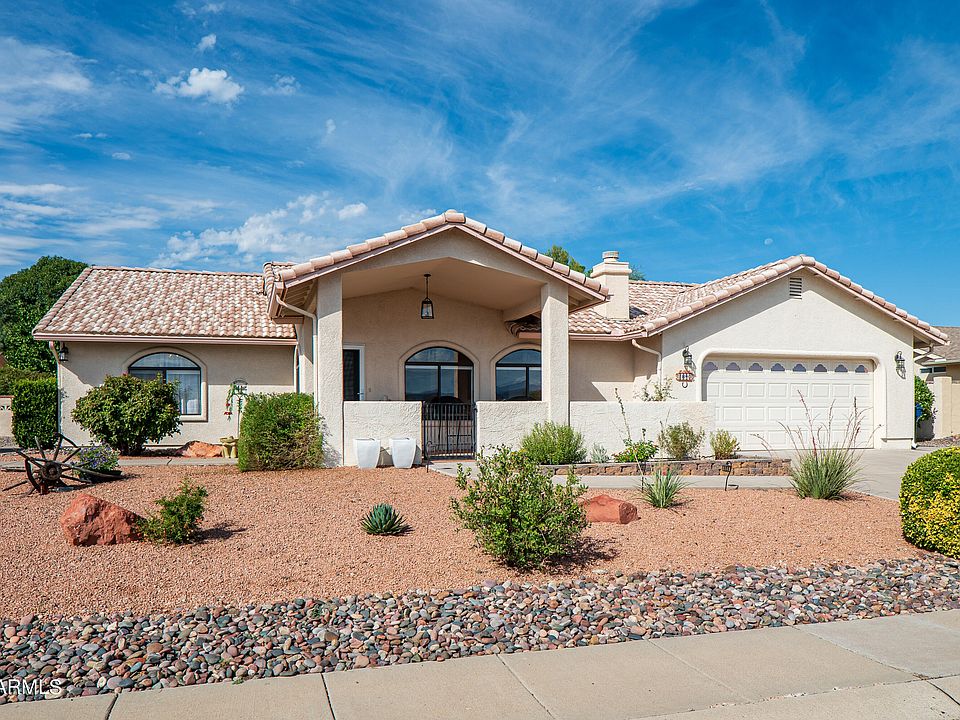 Welcome to your dream home in the heart of the Verde Valley! This stunning property offers breathtaking views of the iconic red rocks, providing a picturesque backdrop for both sunrises and sunsets. The spacious and open floor plan is designed to let in abundant natural light, making every room feel bright and inviting. The master suite, complete with a beautifully refreshed bathroom, is privately situated on one side of the house, while the guest bedroom and bath are thoughtfully placed on the opposite side. Step into the newly enclosed 325 sqft patioan oasis where you can enjoy the serene, private backyard. The home boasts numerous upgrades, including a NOVO water softener and whole-house filtration system, new luxury vinyl plank floors in both bathrooms, and a sleek marble kitchen countertop paired with new appliances. The recent additions of new light fixtures, bathroom mirrors, and shower doors add a modern touch, while the freshly painted master bedroom and new shades throughout give the space a fresh, updated feel.