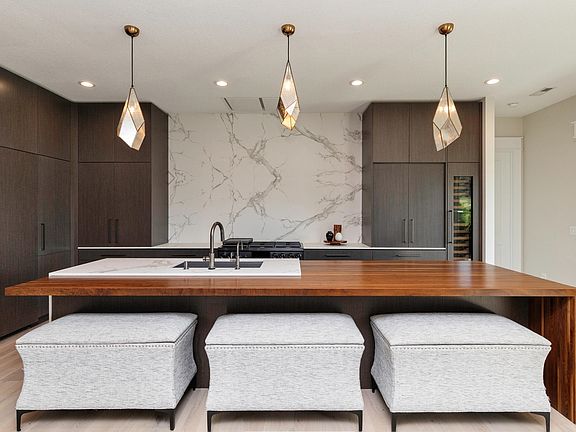 Majestic views, unrivaled privacy. Walls of glass invite incredible natural light and frame every sunset. From morning coffee on the deck with automatic screens to summer evenings during the Principal Classic, this home is designed to live both beautifully and effortlessly—with lawn care and snow removal handled for you. Where every season feels easy. Inside, a complete reimagining by Remodeling Des Moines blends organic modern style with timeless comfort. The kitchen is a work of art, featuring a 13-foot quartz and walnut island, 7-foot backsplash, and 48-inch gas range. The living room centers on a linear fireplace with a floating stone mantel, surrounded by floor-to-ceiling built-ins and warm hardwoods. Five bedrooms, a glass-enclosed fitness room, main floor den, a walkout lower level with bar, and a serene primary suite with spa-like bath provide space to retreat, recharge, and entertain. And when it’s time to unwind, step outside to a setting unlike any other—overlooking a tranquil pond and the legendary fairways of Wakonda Golf Course, an icon of Des Moines living. The finest address on Park Avenue—where convenience meets luxury and every detail elevates daily living.