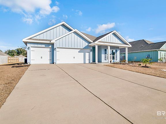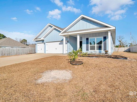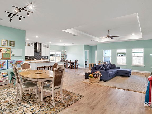 This lovely 4BD/3BA Gold Fortified home offers you a very open and spacious floor plan and is situated in one of the best locations in Foley, AL. As you walk into the foyer you will find two of the guest bedrooms on your right with guest bath. Then it leads you into a huge open concept living/dining/kitchen area. with 9’ ceilings with 10’ trey ceilings in the living room. The kitchen has been upgraded with new cabinets, new oven, an induction cooktop with a beautiful stainless steel hood vent and gorgeous backsplash tile. A butcher block counter is conveniently located on the cooktop side of the kitchen with a large granite island across from it overlooking the living room. A large walk-in pantry will delight anyone who loves to cook and entertain. Eat in kitchen plus a dining area off of the kitchen/den with built in shelves and cabinets. The primary bedroom is off of the living area and also includes a 10’ trey ceiling. The private primary on-suite offers a garden tub, stand up shower, double vanities, granite counters, large walk in closet and a private water closet. You will also find the third guest bedroom and bath off of the living room at the rear of the house. All leading to a large covered back porch that overlooks the fenced back yard which has endless possibilities. Other features include enhanced vinyl 7.5-inch plank flooring throughout excluding the bedrooms/closets, Hurricane panels for all of the windows, and a large 3 car garage. This home is located in a smaller subdivision known for peace and tranquility away from the hustle and bustle, yet only minutes from Hwy. 59 , S. Baldwin Reg. Medical Ctr., shopping, dining and entertainment. And of course, just a short drive to the beautiful beaches of Gulf Shores and Orange Beach. Call today to view this spectacular home! Buyer to verify all information during due diligence.