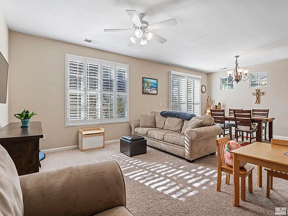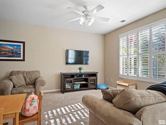 Great townhouse style home conveniently located close to everything in South Meadows including the future Downtown Damonte Development, restaurants, shopping, medical care, parks and easy access to Lake Tahoe! This is a true “lock and leave” home, for those who prefer travel and recreation over yardwork, which is taken care of by the HOA. This home features plantation shutters throughout, open concept living/dining/spacious kitchen area including a large walk-in pantry with deep shelves., Upstairs you will find 3 bdrms, large master bdrm closet, 2 full baths and a very spacious laundry room with plenty of storage and counter space. The cozy backyard patio is surrounded by plants and trees offering privacy and shade, and room for outdoor dining and BBQing, without the responsibility of a big yard. Home includes a 2 car garage plus driveway parking. Home comes with washer, dryer, refrigerator and gas range. Water heater is tankless, for greater efficiency.