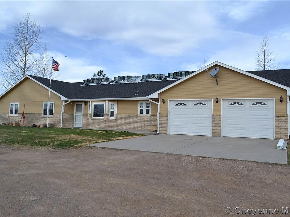 Must see ranch style earthberm home situated on over 17 acres just minutes North of Cheyenne. 3 bedrooms, 2 full baths, 2 car attached garage. RV hookups at NE corner of home with 50 amp electric and RV dump. Large barn with 4 stalls, heated automatic waterers, and electric. Fenced perimeter.