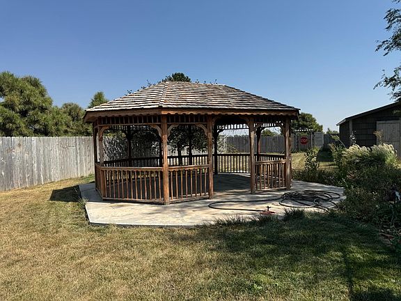 For Sale By Private Auction - bid by phone - through Karen Yoder, Assoc. Broker, Faulkner Real Estate, Inc, Phone Bidding will not end prior to Tuesday, October 22, 2024. Call (620) 356-5808 or (620) 544-3730 today to learn the current high bid or place your bid by phone. Ranch style home, 4 bedroom and 3 bath home with partial finish in the basement. This is the best of both worlds! This property is country living in close proximity of the convenience of living in town. It sits on 2.4 acres and surrounded by an abundance of trees and landscape. When the weather permits, you will enjoy the outdoors complete with kicking back in the gazebo and appreciate the floral and fauna. There is a bonus to this backyard. It also features 48 x 24 Morton building, insulated and complete with heat an a/c. For the man of the house, he will also enjoy the 32 x 60 ESH building. Two overhead doors and a walk in door.