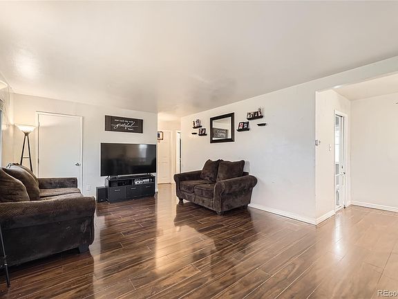 This single family ranch home rests on a spacious lot just minutes from I-25 and Thornton Parkway. Upon entering, you will find highly-durable wood laminate flooring, a gas stove in the kitchen, and an updated vanity in the bathroom. The functional layout provides room for dining and entertaining. Enjoy the fully fenced-in front and back yards, ideal for pets. Both lawns are equipped with automatic sprinkler systems. Additionally, the front-loading LG washer and dryer are included. Located just one block from the Thornton Community Center and Park. No HOA! Schedule your showing today!
