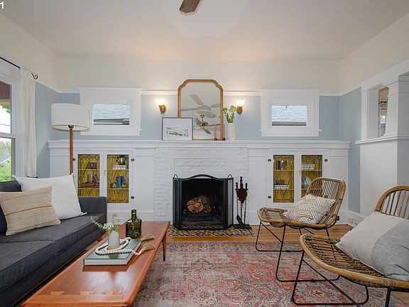 Charming Craftsman Bungalow in heart of Mt Tabor. Welcoming porch leads into light filled living rm/formal dining rm w/classic details - big windows, Oak flrs, anchored by lovely leaded glass hutch. Updated Kitchen opens onto a deck made for entertaining & sunny bkyd w/pear tree, grape arbor, & space for gardening. 2 beds on main plus update bath. Spacious Primary bed up w/sepert zonal cooling. Plus basement waiting to be finished! Newer furnace & Seismic Retro 2015. Detach 1-Car garage w/poten. [Home Energy Score = 8. HES Report at https://rpt.greenbuildingregistry.com/hes/OR10194200]