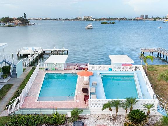 One or more photo(s) has been virtually staged. Ideally located in a desirable beachside area, this charming residence in South Pasadena, FL places you just minutes from shopping, local cafes, parks, and the beautiful Gulf beaches. With nearby waterfront dining and popular attractions, every day feels like a getaway. Discover coastal comfort in this fully furnished, one-bedroom, one-bath waterfront retreat featuring a cozy queen bed and a comfortable couch that easily converts into a sofa bed perfect for guests. Inside, you'll also find a dedicated work desk and chair for remote productivity, a personal wine fridge for relaxing evenings, and a private laundry room with washer and dryer connections for added convenience. Enjoy your morning coffee or evening sunsets from the private waterfront patio, or unwind in the bright, airy sunroom with peaceful views. The community offers a sparkling swimming pool, convenient parking, and additional storage space. Soak up the true Florida lifestyle where sunshine sparkles on the bay, dolphins glide by in the distance, and the occasional manatee drifts lazily past your patio. Life here is as relaxed and beautiful as the Gulf breeze. Snowbirds and traveling healthcare professionals are warmly welcomed seasonal stays of 6 to 8 months are available at a special rate.