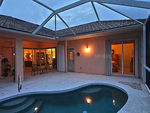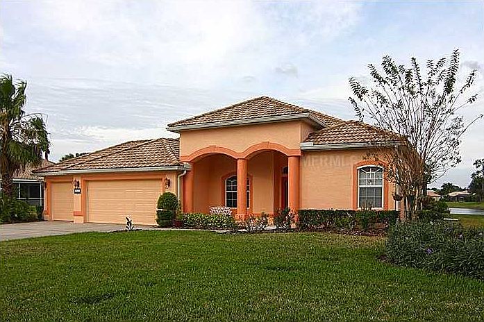 CUSTOM 2000+ SF LAKE-FRONT POOL HOME WITH 3-CAR GARAGE IN GATED GOLF COMMUNITY OF BOBCAT TRAIL! Freshly painted, inside and out, new stainless appliances, gutters all around, recently re-landscaped! Push-button hurricane shutters ($35K!) front and back! Well & pump for irrigation. Golf cart included! Seven storage cabinets in garage included! Empty lot next door cannot be built on (CDD access to lake), affording extra privacy. Sliding glass doors bring the outdoors in for massive entertaining space. Screened lanai features decorative pool with waterfall and long lake views. The master suite has his 'n her closets, plenty of room for all of your furniture and great views of the pool and lake. Walk-in closets in all three bedrooms. The 3rd bedroom has floor-to-ceiling wooden built-in bookcase and desk, French doors, making a great study or office. Enjoy the wonderful lake views as you sit by the pool every night. The master bath has a garden tub and a separate shower. Enjoy top-rated golfing along with tennis, swimming and great activities at the clubhouse. All of this in a guarded and gated community mere minutes to shopping, beaches, restaurants. LOVELIEST AND BEST CARED FOR HOME AVAILABLE IN THIS PRICE RANGE!