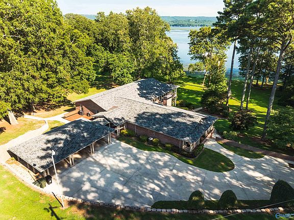 Come home to your private piece of paradise on Lake Guntersville! This property offers 2.31 acres with 380 ft of shoreline, deep water, a 2 slip boathouse with an abundance of decking to enjoy glorious sunrises! The tastefully remodeled, full brick home offers 5 BR, 4 BA, Living Rm with wood burning fireplace, Great Rm with beautiful lake views, kitchen with large pantry, granite counter tops, wine cooler, double ovens. Stunning lake views from Primary BR. Hardwood floors & tile flooring. Finished basement offers a huge Family/Rec Rm, Bunk room for all of the kids, 2 BR, 1 BA , 2 Bonus Rms, office & kitchen. LVP flooring. 3 car carport, 2 car detached garage, workshop and more!
