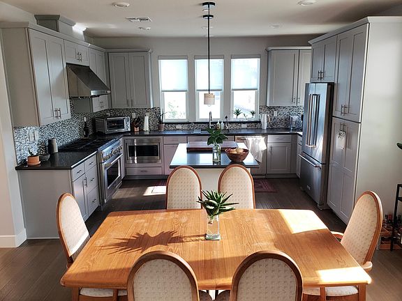 Enjoy the view of the water from this 3 bed, 3.5 bath three story single family home. Only six years young! Located across the street from the park, bike trail and the marina. Nearby are top schools, SF ferry and the future site of shops and cafes. Located in the middle of the island, you're just a quick drive or leisurely stroll to all of Alameda! This beautiful home boasts custom window shades, designer light fixtures, NEST thermostat and a laundry room with a washer, dryer and sink. The first floor is a separate in-law suite w/ kitchenette. On the second floor is the Great Room with dining area, living room, desk workspace, and kitchen with high end stainless steel appliances. Don't forget the wrap-around balcony with amazing views of the water. On the third floor, the master ensuite features a custom walk-in closet and a large bathroom with tub, tiled stall shower, dual sink vanity and extra storage. The second bedroom has private bathroom with stall shower and walk-in closet. One car garage w/ storage. Gorgeous designer furnishings! This home is offered furnished with everything you need for a quaint getaway. Perfect home for corporate rentals, traveling nurses, or just a home-away-from-home! Not included: owner uses half of the garage for storage. All applicants must fill out form to be considered. Additional Details: - Available in July, let me know if you're looking for an earlier move-in date - $6500/month rent - Available Jan 1st - 1.5x month rent security deposit - No smokers - No pets - Rental application and credit check required Home Features: - 3 bedroom + 3.5 bathroom - 1st floor: wrap-around porch, 1-car garage, in-law suite 1bd / 1 bth with kitchenette - 2nd floor: great room including living & dining room, kitchen, wrap around balcony, half bath, laundry room - 3rd floor: master bedroom / 1 bth w/ juliet balcony, 2nd bedroom / 1 bth - Designer shades throughout house - Abundant cabinet storage in kitchen, laundry room, and bathrooms - Luxury kitchen appliances: six-burner gas cooktop and oven; refrigerator/freezer, dishwasher, huge sink - Hardwood floors on 1st and 2nd floors, rich carpeting on 3rd floor - Central air conditioning and heating w/ Nest thermostat All applicants must fill out form to be considered.