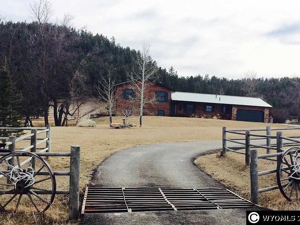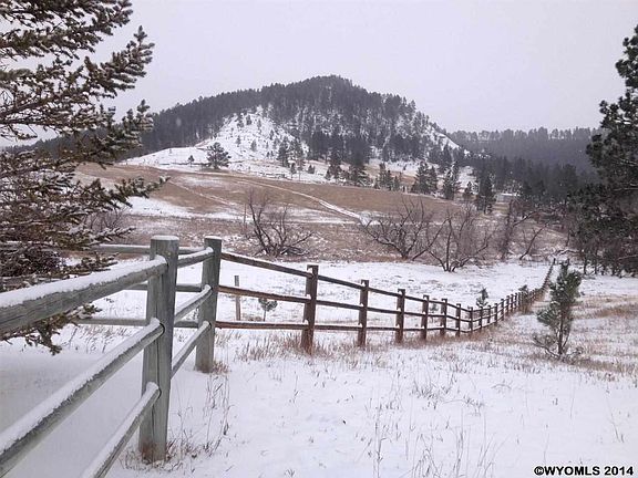 Immaculate tri-level home on a gorgeous 56 acres parcel located in the Wyoming Black Hills. The pasture includes, a seasonal stream, well maintained native grasses, timber and rim rock outcroppings all overlooking the Belle Fourche River. The property includes a paved driveway, wood rail fenced entrance, fenced and landscaped yard with an automatic sprinkler system, fruit trees and raised garden beds, 36x48 metal sided pole barn, horse runs, and automatic waters.