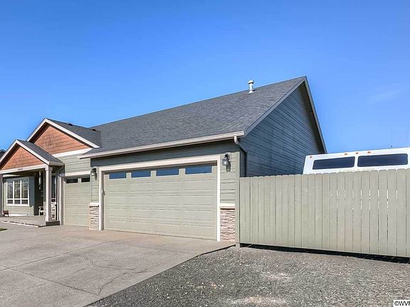 Beautiful open floor plan, 4 BR- 2.5 bath, single level home. Appalachian maple floors, granite slab counter tops, stainless steel appliances, alder cabinets, gas fireplace with mantle. Gas forced air & air conditioning. Triple car garage w/8' storage above. Master suite has garden tub & walk-in closet. Large landscaped backyard, sprinklers, raised bed, room for large R.V. or large boat, 14'x21' garden, and 8'x16' garden shed. 2 solar powered attic fans with extra smart energy package.