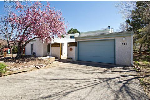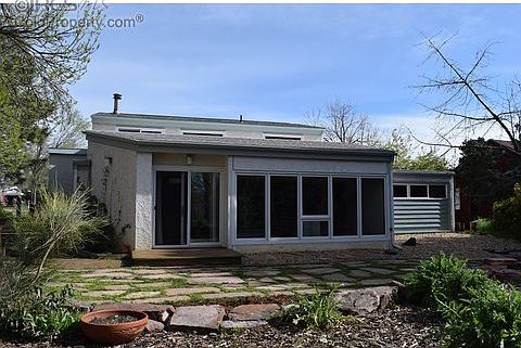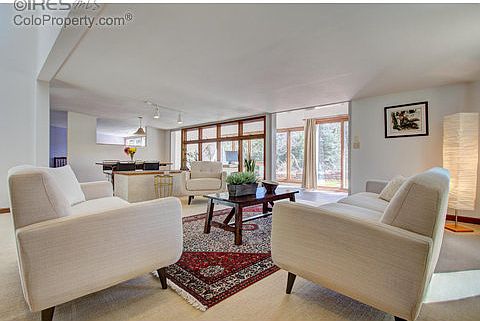 Enjoy nature and privacy from inside this one-of-a-kind home. A wall of south facing windows opens to a serene wooded setting with a pond and Flatirons views. Vaulted and open. Energy efficient passive solar design brings natural light into the kitchen etc. Master suite with private living area, study & loft. Lucky's Market and the Wonderland Lake Trailhead are nearby. NO BASEMENT. NOT IN FLOOD PLAIN. Mud room.