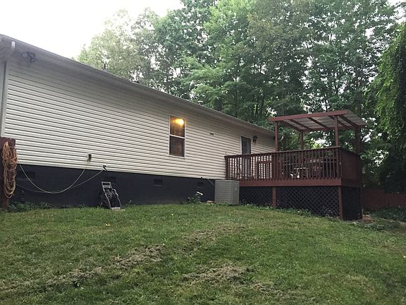 Move in ready, vinyl ranch with laminate floors in main area. Office has closet. Open concept living, dinning and kitchen areas. Deep privacy fenced backyard with firepit, deck is half covered. Storage building stays. Huge circle drive with plenty of extra parking including 2 car carport. Refrigerator stays.