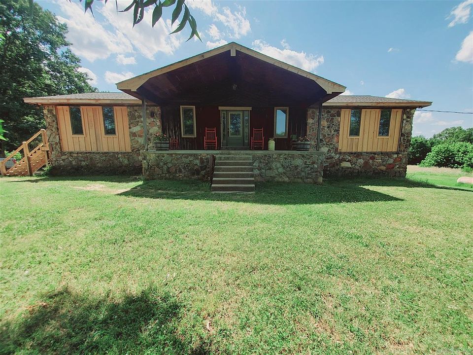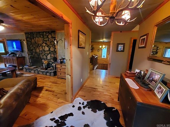 PRICE REDUCED!! Picture it, your own mini-farm, a one-owner 5-bedroom 3 bath home situated on 5.25 acres in Southeast Independence County. The exterior is cypress and western cedar with Anderson and Quaker windows. Enter the upper level passing by your rocking chairs on the covered front porch to a nice entry hall, custom hickory flooring, a living area with a see-through fireplace to the dining room and kitchen. The kitchen was completely renovated in 2007 with walnut cabinets, rock backsplash, granite tile countertops, a Kohler farmhouse sink and boast stainless steel Frigidaire Professional series appliances. The dining area patio doors lead to an elevated 16 X 16 screened-in porch and wrap around 8x32x21 ft deck. This is perfect for entertaining, grilling, and enjoying the evening sunset. There are 3 bedrooms, a hall bath, and a master bath on the upper level. Closets --did we mention closets and storage space? ... well.. You will need no more! -- This home is graced with closets galore on both levels! The lower level can be utilized as a totally separate living quarters or mother-in-law suite if needed. The lower level is pre-plumbed for an additional kitchen and consists of 2