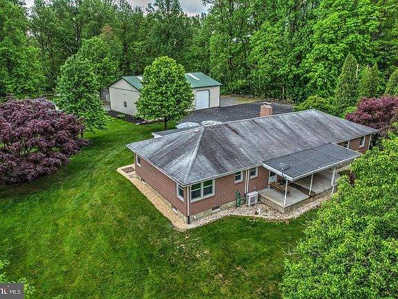 Spectacular one-of-a-kind property for the ultimate recreationalist. 12.6 acres of secluded woodland which includes trails, wildlife, charming chicken coop with electric and fenced animal enclosure, storage sheds and spacious open yard. Relax outdoors on the low-maintenance composite deck and the large covered front porch overlooking the private lawn. 60’ x 40’ pole barn with two 12’ doors, skylights, overhead lighting, utility sink, work benches and included air compressor for all your recreational toys and projects. Enrolled in Clean & Green for reduced taxes. Beautifully-updated and well-maintained brick rancher with many recent upgrades. Eat-in kitchen with lots of counter space and new luxury vinyl plank flooring. Multipurpose breezeway remodeled in 2021 can be used as office, mudroom, formal dining room, playroom etc. Awesome finished lower level family room with sleek bar area and a cozy woodstove with stacked stone hearth. The other side of the basement features a large, dry storage room with half bath, laundry, storage shelving and walkout stairs. Primary bedroom with ensuite bathroom and his-and-hers closets. Bedroom 4 was added recently, but could quickly be returned to garage space. Energy efficient ductless mini-split forced air heat pump system, 2 new water heaters (2022), new water treatment system: UV light, water softener and pressure tank (2021), new well pump (2019) plus many old copper plumbing lines replaced with PEX. Truly a rare gem and a hobbyist's dream!