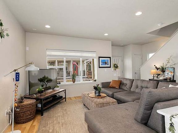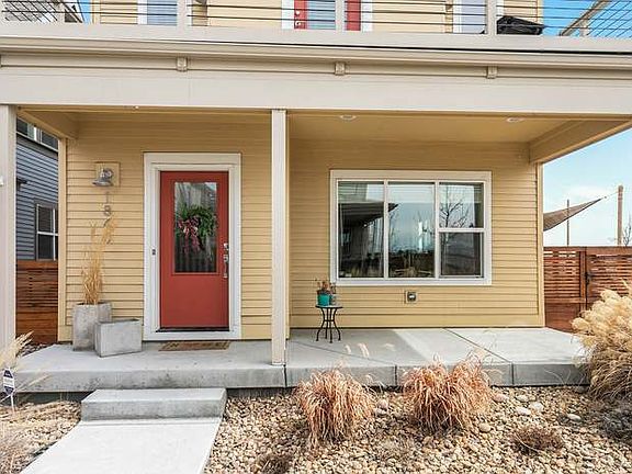 Situated in an intimate courtyard setting with a corner lot, and just 10 MINUTES FROM DOWNTOWN DENVER, this Brookfield Tealight home boasts mountain views and is just steps away from the community walking path. Enjoy open concept living with premium finishes. West facing intimate side yard & patio. Experience the latest in smart home living w/ high-speed wiring & Tankless Water Heater. Relax and unwind off your 2nd floor Master Balcony and experience endless evenings of glorious sunsets over the Colorado Rockies! When you are ready to unwind, the master retreat offers an ideal escape w/ vaulted ceilings, ensuite bath & walk-in closet. Cozy finished basement easily be converted into a 4th bedroom if you desire. Midtown is a social community with year-round events, a Montessori pre-school, new K-8 school, award winning craft brewery, and a delightful French cafe. Come join the fun!Home is tenant occupied through April 1. Showings Begin March 4th.