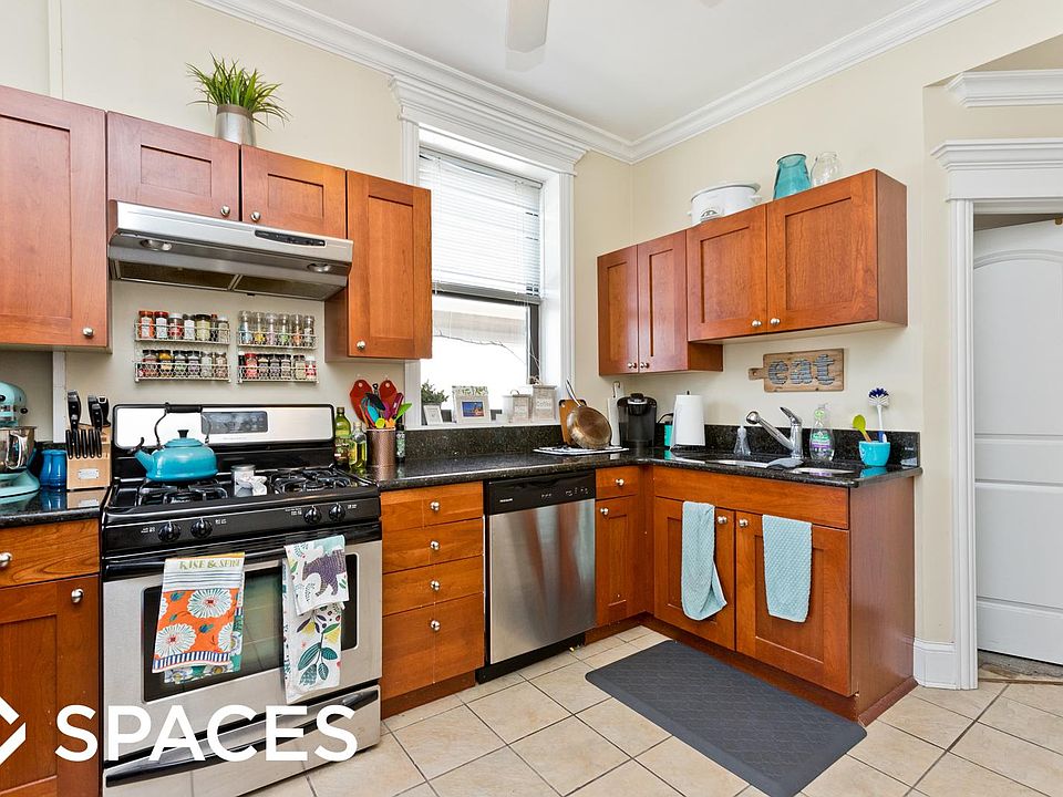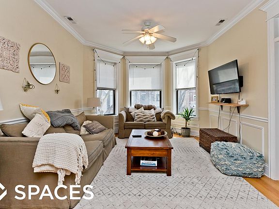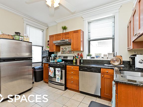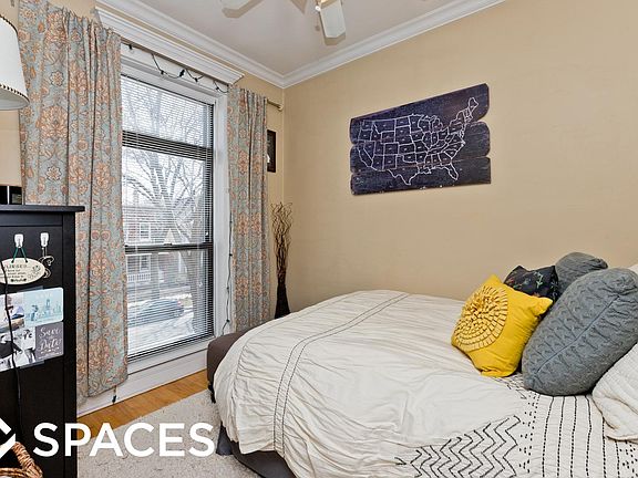 This three bedroom unit features a modern kitchen with a stainless steel kitchen, a dishwasher, microwave, granite counter tops, and custom cabinets. There is hardwood flooring throughout the unit, large windows, ceiling fans, a dining area, spacious rooms, large closets, and updated bathrooms with storage space, and tiles in the shower. There is central heating and air conditioning, laundry is in unit, and there is parking available for an additional price.