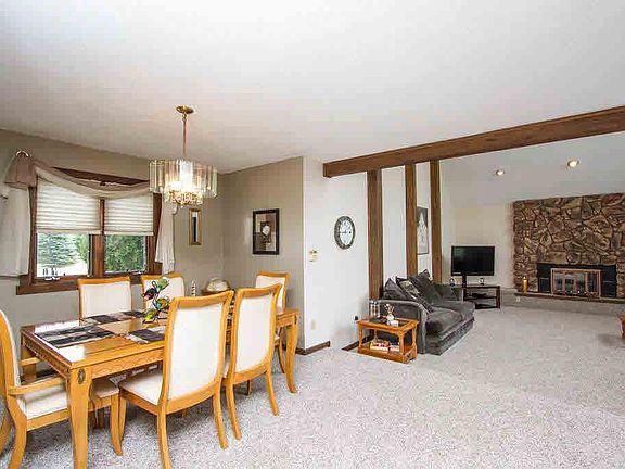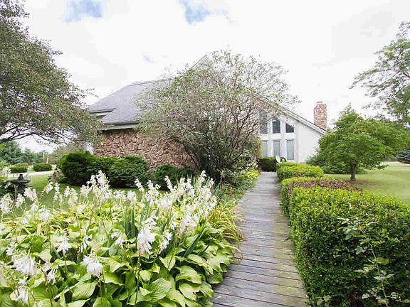 Soft contemporary, 4 Bed, 2 1/2 bath Bedford beauty surrounded by 5 gorgeous acres! Main floor master suite, large open foyer with pond, vaulted ceilings, huge eat-in kitchen w/ snack bar, formal dining, 2 1/2 car plus additional 1 car gar & more!