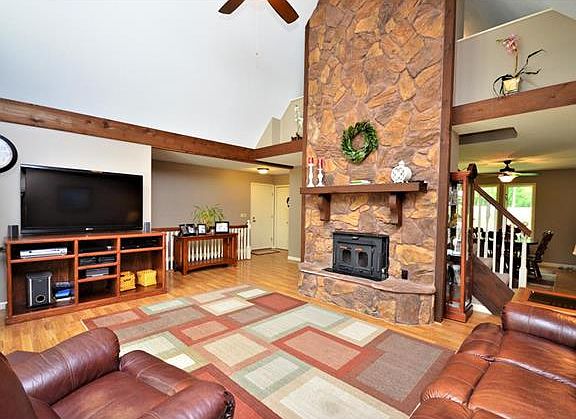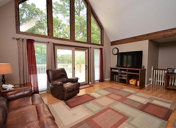 Are you looking for a home that offers privacy, views and still close to everything you need? This Custom Ranch Home is on 4 Wooded Acres and feels like a retreat in the woods. The Great Room has a full stone 2 story wood burning fireplace that welcomes you in with its soaring cathedral ceilings, open floor plan and wall of windows. This home has been updated and well maintained with such things as a brand new roof, 2 panel chalet doors, newer adult height vanities, faucets, lighting, Corian counters, and stainless steel appliances. The upstairs loft has brand new carpet and it's own balcony. The bedrooms and laundry are all on the main floor. The MBR Suite has a walk in closet and bay window. Outside you can enjoy the hot tub or sit at one of the deck areas. The 23x20 garage is finished and there's an additional detached 28x21 garage making sure you have room for a workshop and all your toys. This home is A MUST SEE!