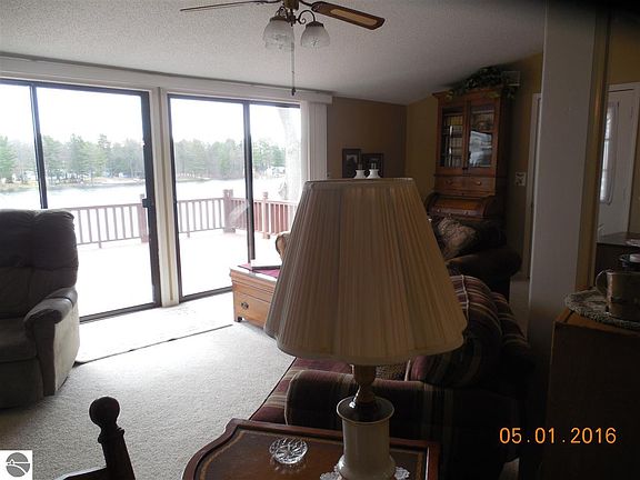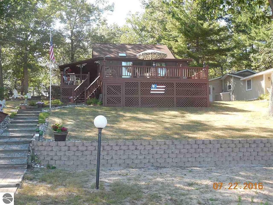 This charming home has 120 ft. on Floyd Lake. Sitting on a double lot, it makes this property very spacious. The kitchen/dining is an open floor plan with skylights, room for your table in the kitchen, oak cabinets, nice pantry under the stairs, and a dinning table for when then family comes to dinner. The living room has a breathtaking view of the lake with all the glass and has easy access onto the large 24x16 ft. deck, that continues down the side of the house. Right off the side deck is a 15x20 brick patio with a wood burning fire pit. As your walking down the brick stairs to the lake, they had paver bricks as a sea wall at the beach, very nicely done. There is also a little house on the beach that the NEW pump for lake water sits in to water all your pants and yard. There is plenty of storage for all your toys and garden tools with the 12x18 shed and 3x8 storage in the cabinet on the house. The dock and paddle boat even goes with the house!! They also have a 28x31 two story detached garage that has electricity across the street on its own 96x210 lot. This lot has access to Sand Lake. They will sell this for a additional $35,000.