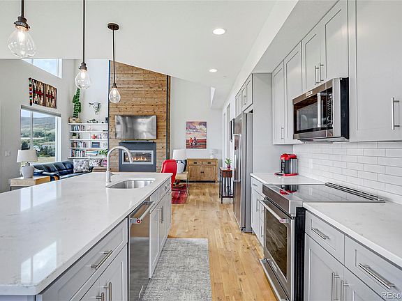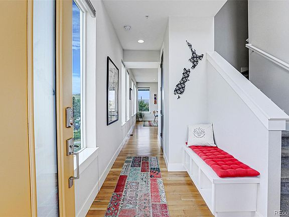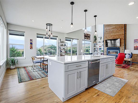 This is a rare opportunity to own a stunning contemporary paired home in one of Golden's top neighborhoods, Bachman Farms. This exceptional property features a rare walk-out basement that backs to open space, offering breathtaking city and mountain views from every level of the home. Located just minutes from Apex Park, Green Mountain, and South Table Mountain, and with easy access to Denver, this home is perfectly situated for outdoor enthusiasts and city commuters alike. A paved bike and walking path leads directly to downtown Golden, and the ski slopes are less than an hour away. The open main level boasts modern finishes throughout, including hardwood floors and a gourmet kitchen with an oversized island and sink. The living room features a vaulted ceiling, a gas fireplace, and custom built-in shelving, creating a warm and inviting space. The front entry impresses with a built-in bench and vaulted ceiling. Upstairs, the primary suite offers stunning mountain and city views, a luxurious primary bath with dual quartz vanities, and a walk-in closet. Two additional bedrooms, a full bathroom with dual quartz vanities and floor-to-ceiling tiled tub/shower, and a laundry room with built-in shelving (washer and dryer included) complete the upper level. The fully finished basement provides a spacious flex room currently divided into a bedroom and family room, along with an oversized closet/storage room. An ensuite bathroom with quartz counters and a jacuzzi tub adds to the basement’s appeal. The mechanical room features a tankless water heater. The 2-car heated garage with epoxy floors, built-in shelving, additional outlets, and a utility sink offers ample space and convenience. The fenced yard includes a composite deck with newer metal railing, professional landscaping, retractable awning, and flagstone steps. Additional features include central AC, a smart thermostat, and a sprinkler system. This home has so much to offer and more. Schedule your showing today.