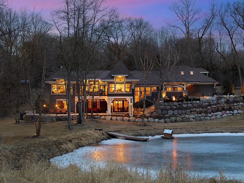 Welcome to Woodland! Experience the perfect blend of elegance, comfort and convenience in this beautifully designed home crafted by renowned architect Mike Sharratt. Nestled in a serene, wooded setting with breathtaking pond views, this home offers a peaceful retreat just minutes from downtown Wayzata and Excelsior. The open-concept main floor showcases stunning woodwork, wood floors, a cozy sunroom, a recently updated gourmet kitchen with high-end finishes, a dining area, a spacious walk-in pantry with an additional freezer and refrigerator, and a main floor laundry room. The main floor primary suite includes a luxuriously updated bathroom with spa-like amenities and a large walk-in closet. A spacious bonus room above the garage, including a bathroom, is excellent for an office, additional bedroom, or guest suite. The finished lower-level walks out to a beautiful, private patio area. With newer wood floors, a great family room, and an amazing pub-like bar, it's fantastic for entertaining. It also includes two more bedrooms, two bathrooms, and a billiard room. Located in the award-winning Minnetonka School District, this home is conveniently located near ample recreation, including Lake Minnetonka, walking and biking trails, shopping, dining, and all the best the area offers—a rare opportunity to own a private, nature-filled retreat with the convenience of city living.