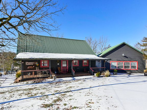 This is the very best Roaring River / Table Rock Lake Front property you will ever find. With over 600' of Roaring River frontage on the last bends before it flows into Table Rock lake. This 1.3 acre property consists of ''The Cabin'', a 4 bed 3 bath 2040 sq.ft. true Cabin with expansive covered front & rear decks & an open floor plan. You enter into the Kitchen/Dining area that flows into a Great room with vaulted ceilings & expansive views of the water. The Kitchen boasts wood cabinetry, granite countertops, an antique sink & large center island. Main floor laundry, owner's suite & additional bedroom round out the first level. Upstairs there is a cozy family room with more views of the water as well as two beds & another full bath. Matching 728 sq.ft. ''The Guest House'', is 1 bed, 1 bath with a 4 bunkbed nook for the kids. It has a very antique/retro vibe that let's your worries drift away. The detached outbuilding ''The Shop'', is 40' x 40' with concrete floors & easy road access near the end of the property. There are so many different areas for relaxing & enjoying the wildlife & nature from the decks to the side patio & fire pit areas. The easy water access makes launching canoes & kayak's a breeze. The natural beauty alone puts it on the sort list for vacation, full time or retirement. This one has it all so you better make the call! ''buyers to do own due diligence in verifying all measurements, restrictions & amenities''