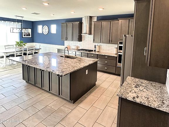 Welcome to this stunning, move-in ready 5-bed + bonus room, 3-bath, 3-car garage home in the desirable Estrella Mountain Ranch neighborhood. This home offers an open floor plan ideal for both family living and entertaining. Upon entry, you're greeted by a bright, airy great room with large sliding doors and windows that flood the space with natural light. The chef's kitchen boasts granite countertops, a spacious island, stainless steel appliances, and ample cabinetry. With 8ft doors and tall ceilings throughout, the home exudes elegance. The backyard features high-quality synthetic grass and a Bullfrog spa, perfect for year-round enjoyment. This home is near perfection and ready for you to move in!