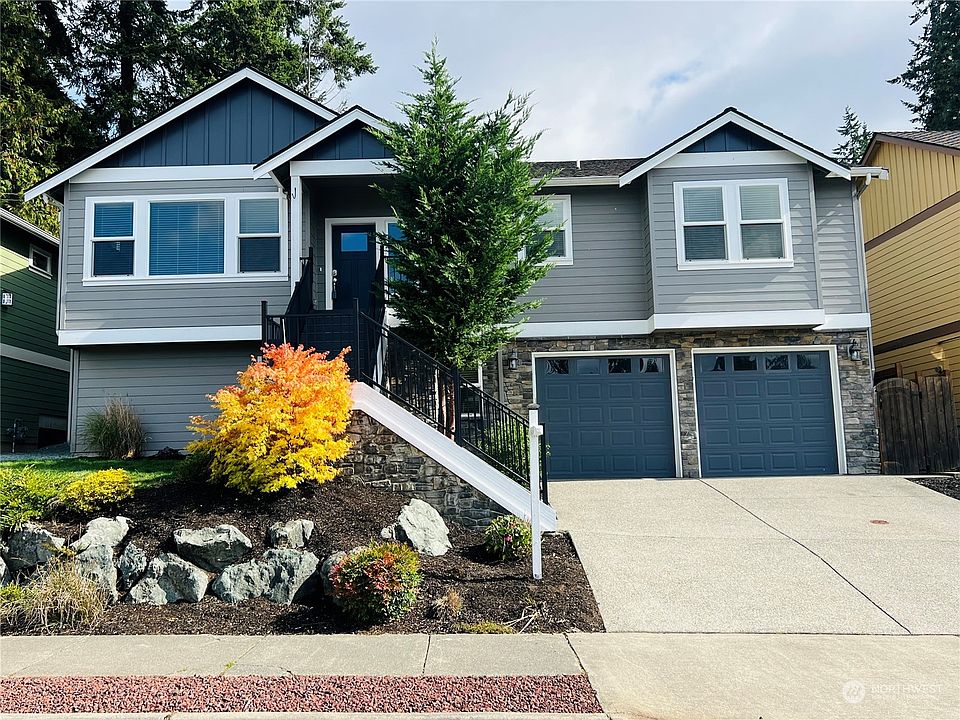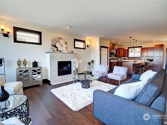 Stunning custom home located on 6th hole of the Gleneagle Golf Course Community! 4 bed, 3 bath home boasts a main floor showcasing spaciously designed kitchen w/ quartz countertops, stainless steel appliances, sophisticated finishes & stylish details throughout, flowing seamlessly into luxurious living room with true open concept design, accentuating sunset views! Primary bedroom w/ luxurious ensuite bathroom & custom walk-in closet! Bottom floor is true interior mother-in-law suite w/ full kitchen & W/D hookup. Other highlights include new paint, luxury vinyl plank floors, gas fireplace, custom blinds, A/C, 3-car garage & private, fully fenced yard w/ pet grade turf and patio with fireplace! Perfect move-in ready home!