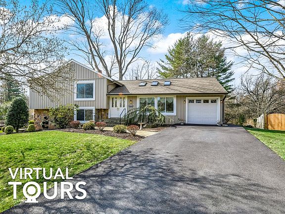 Bright, airy, and impeccably designed 4 bd / 3 ba home in Olney with a gourmet kitchen, luxurious baths, and tranquil outdoor spaces! A stone walkway, lined with beautifully maintained landscaping, ushers you into the home through double doors. Inside, you're met with wood floors and vaulted ceilings with skylights, creating a grand entrance. Host guests in the formal living room, and relax by the floor-to-ceiling stone fireplace in the den. The open kitchen and dining area makes you feel like you're in Greece or Italy with its decorative columns, tile flooring, arched doorways, and sliding glass doors to the serene Trex deck. Cook with the help of granite countertops, stainless steel appliances, and an abundance of cherry wood cabinets, and gather around the oversized center island. The light-filled bedrooms are comfortable to wind down in, while the baths provide spa-like experiences every night, equipped with antique style wood vanities, granite countertops, and either a glass enclosed walk-in shower, with pebble flooring, or a tiled shower and jetted tub combo. Mature trees and fencing surround the expansive backyard lawn and electric powered gazebo, creating a private oasis to escape to. Other features: One car garage; Double pane windows; Attic and attached exterior storage. Located near shopping, dining, and Olney Square Park, with easy access to Rt. 97 and DC! Buyer should verify all information.