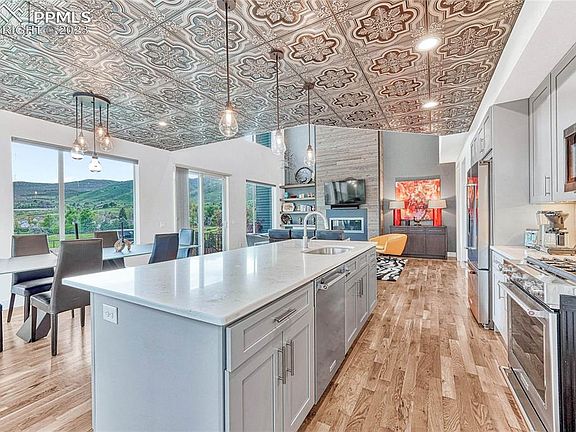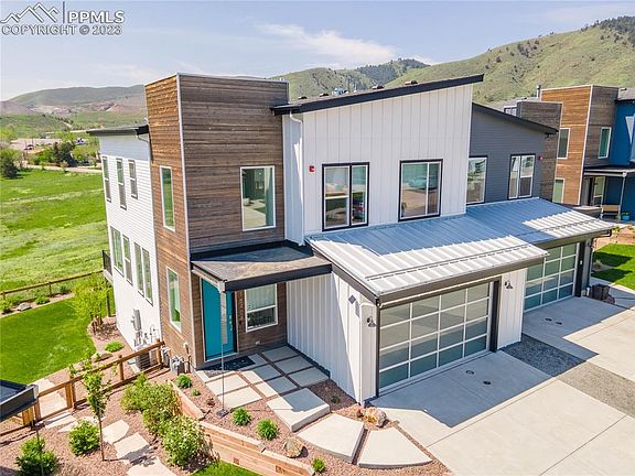 Rare opportunity to live in one of Golden's top neighborhoods, sold out in 2018. Stunning luxury contemporary paired-home, backs to open space, and has mountain views! Located just minutes from Apex Park, Green Mountain, South Table Mountain, and easy access to Denver. Paved bike/walking path to downtown Golden. Be on the ski slopes in under an hour! Modern finishes throughout. Open main level living features hardwood floors, a gourmet kitchen w/ an oversized island w/ sink. Family room with vaulted ceiling, gas fireplace and custom built-in shelving. Fabulous front entry with built-in bench and vaulted ceiling. Upstairs is the Primary Suite with mountain views, primary bath with dual quartz vanity and walk-in closet. Upstairs has 2 additional bedrooms, a full bathroom with dual quartz vanity and floor-to-ceiling tiled tub/shower, and laundry room with attached shelving -- washer and dryer included! Fully finished basement has a spacious flex room that is currently split into a bedroom and fitness room, and also contains an oversized walk-in closet. Ensuite bathroom w/ quartz counters. Mechanical room w/ Navien tankless water heater, whole house humidifier. Oversized 2 car heated garage w/ epoxy floors, attached shelving, and 240 volt EV charger. Fenced yard, composite deck w/newer metal railing, professionally landscaped, retractable awning, flagstone steps. Central AC, Ecobee thermostat, Netro smart sprinkler system, Energy Star certified. Beautiful and Bright-this home has it all!