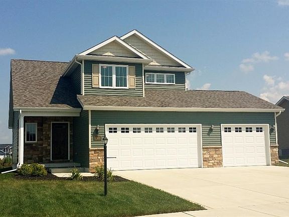 This is our MIDDLETON MODEL, a 1780 square foot two story home with FULL BASEMENT. Interior features include an open concept living area, CRAFTSMAN PACKAGE, HARDWOODS ON FIRST FLOOR, kitchen with maple cabinetry, QUARTZ COUNTERTOPS, breakfast bar, pantry, stainless appliance package to include microwave and dishwasher, spacious dining area with sliders to rear patio, main bedroom with tray ceiling, private bath and walk-in-closet, oil rubbed bronze lighting and hardware, oversized ceramic tile, and finished laundry room. Exterior features include covered porch, patio, tasteful vinyl and stone finish, concrete drive and walks, attached three car garage with openers installed, full landscaping package to include sod in front, seeded sides and rear, and builder's warranty.