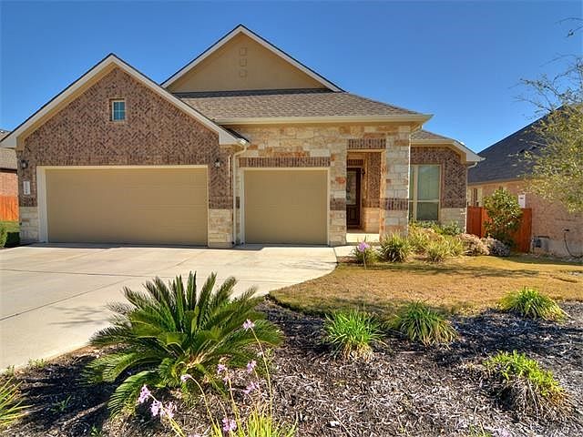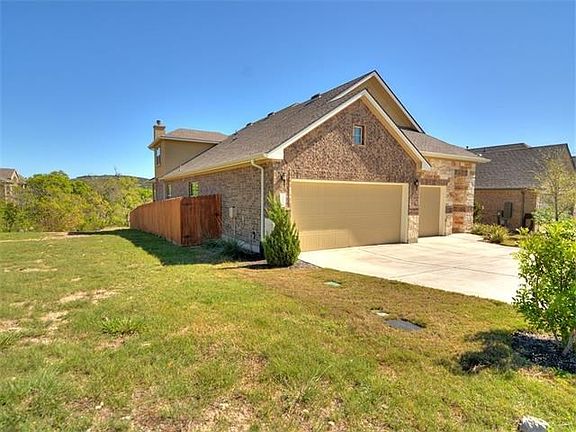 Beautiful 4 bedroom 3 full bathroom floor plan in great condition with fantastic tile flooring and a sweeping panoramic view off covered back porch! Wonderful natural light throughout home. Majority of this house is one story with over sized game room or living room "up" with full bathroom. Granite counters, high ceilings, double vanities in master, long efficient second bathroom, large laundry, 3 car garage. Washer-Dryer-Frig could convey. Lake Travis ISD Top Tier Education!