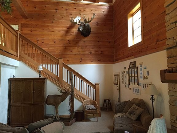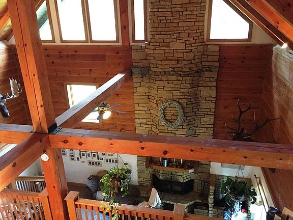 If youâ??re looking for unique, this oneâ??s for you! This beautiful custom built log home was crafted sparing little expense. The 3 floors are in a stair step pattern to give a grand open feel with a hand laid stone fire place rising majestically for 3 stories. Tile and hardwood floors are used throughout with a generous use of Southwest Wisconsin hardwoods for trim and accents. A bath is placed on each floor to be conveniently close to each bedroom and the entire upper level is a master suite accessed via a hardwood spiral staircase and balcony.The kitchen features cherry cabinets and ;solid surface ;counter tops. When youâ??re ready to relax, enjoy a cup of coffee on the front porch spring. The views are exceptional and overlook a spring fed stream and Studenberg Valley. The property has a very private feel as the 4.24 m/l acre parcel is on a dead end road between 2 large parcels. There is plenty of room for your vehicles and â??toysâ?? in the 30x40 pole building with power and concrete floor and 9x15 garden shed.Within minutes of the Wisconsin River and thousands of acres of public access land for all of your recreational needs. This is not your average property so take a look today.